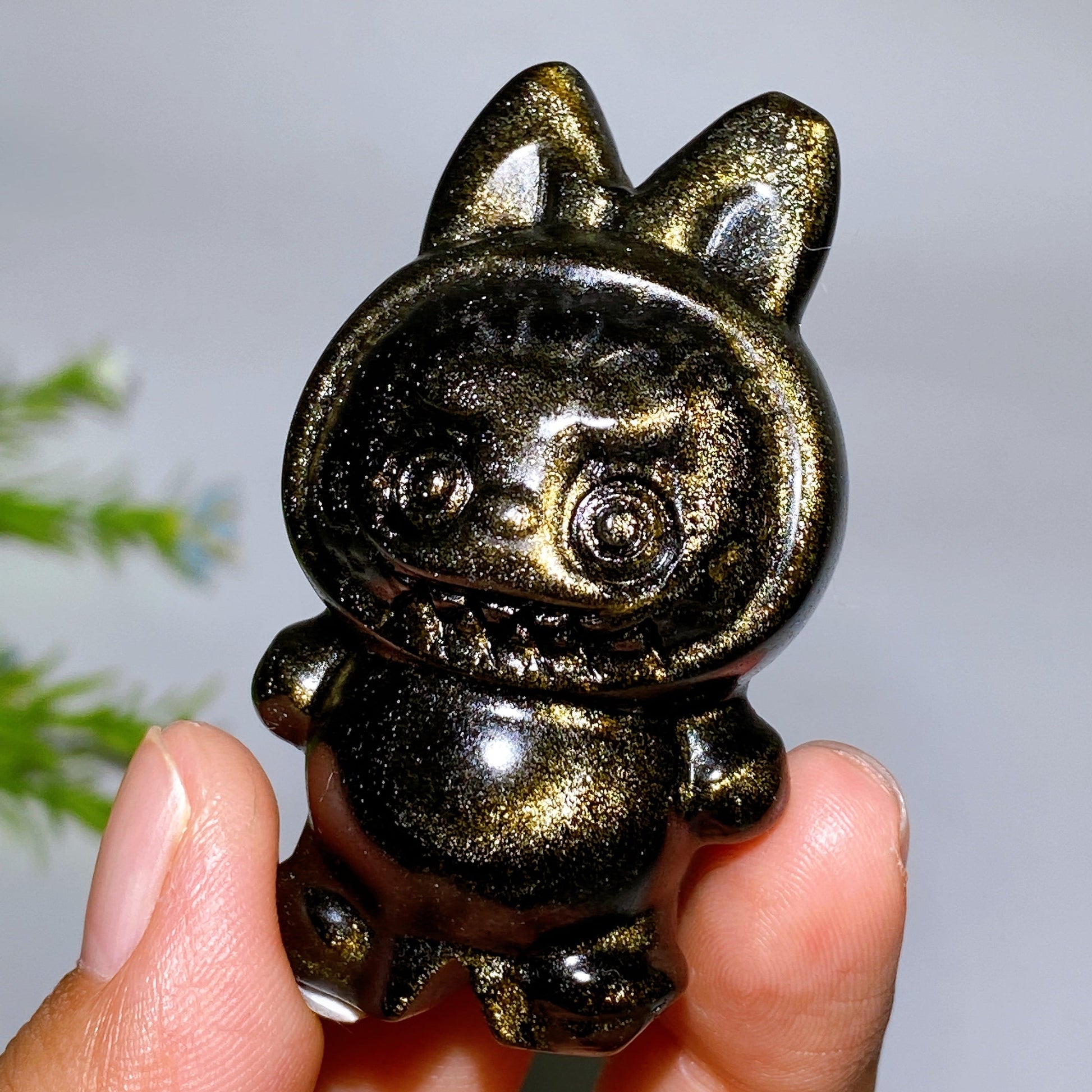 2.3" Rainbow Moonstone Golden Obsidian Labubu Carving Crystal Healing Bulk Wholesale
