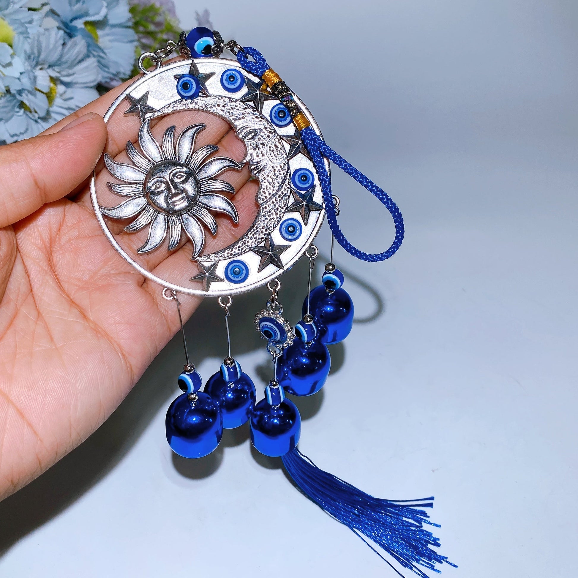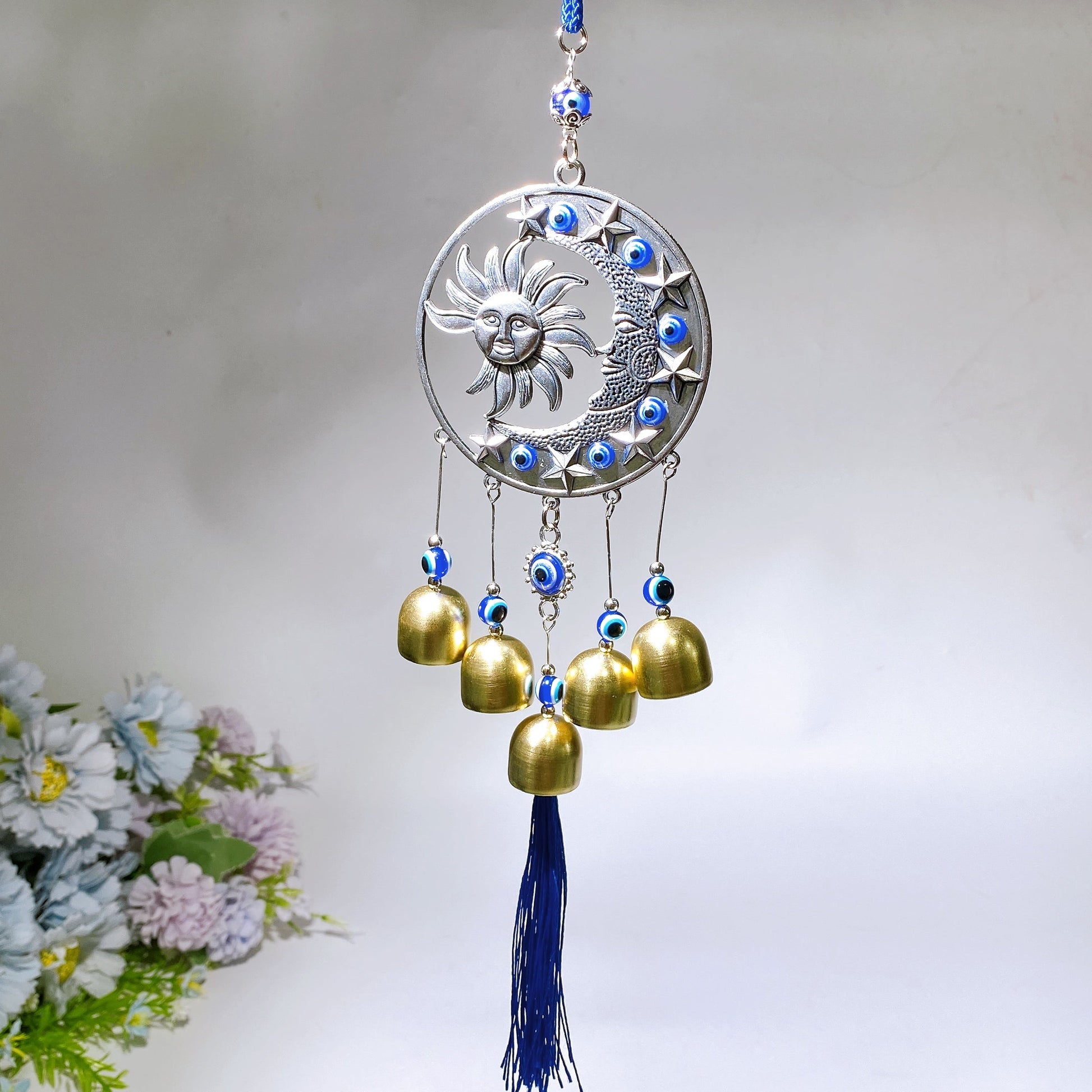 35cm Evil Eye Sun & Moon Metal Chime with Bells Hanging Ornament Crystal Healing Bulk Wholesale