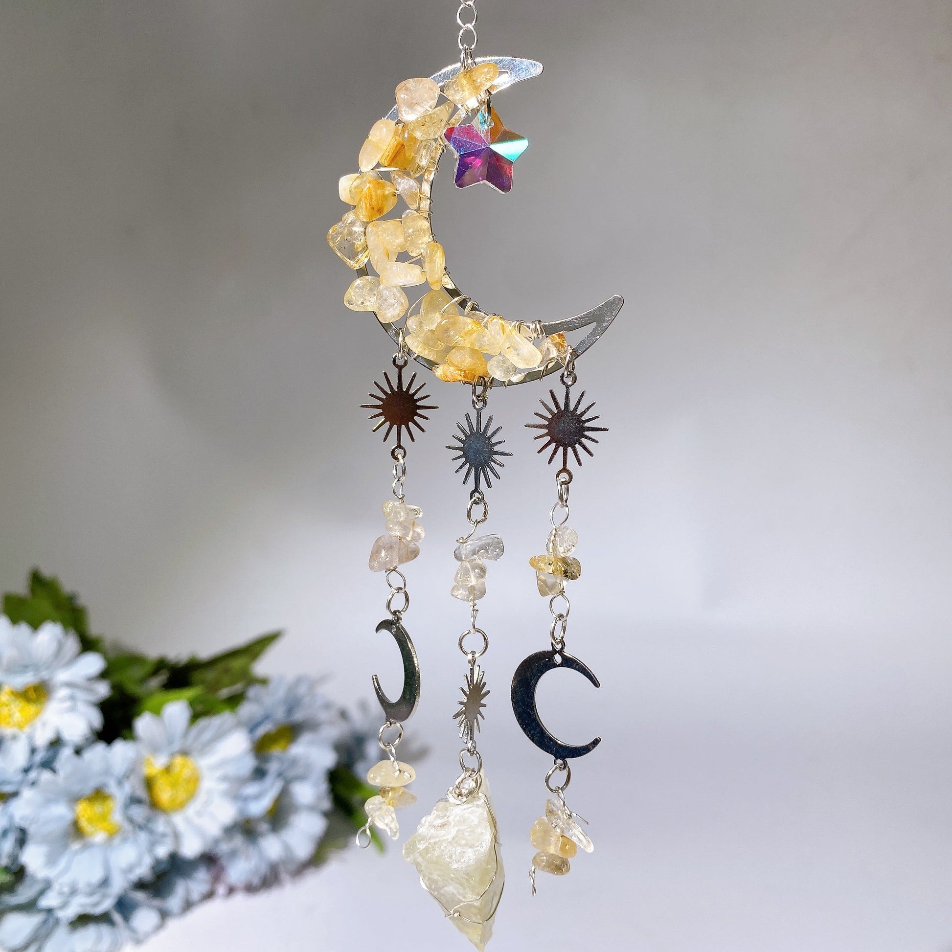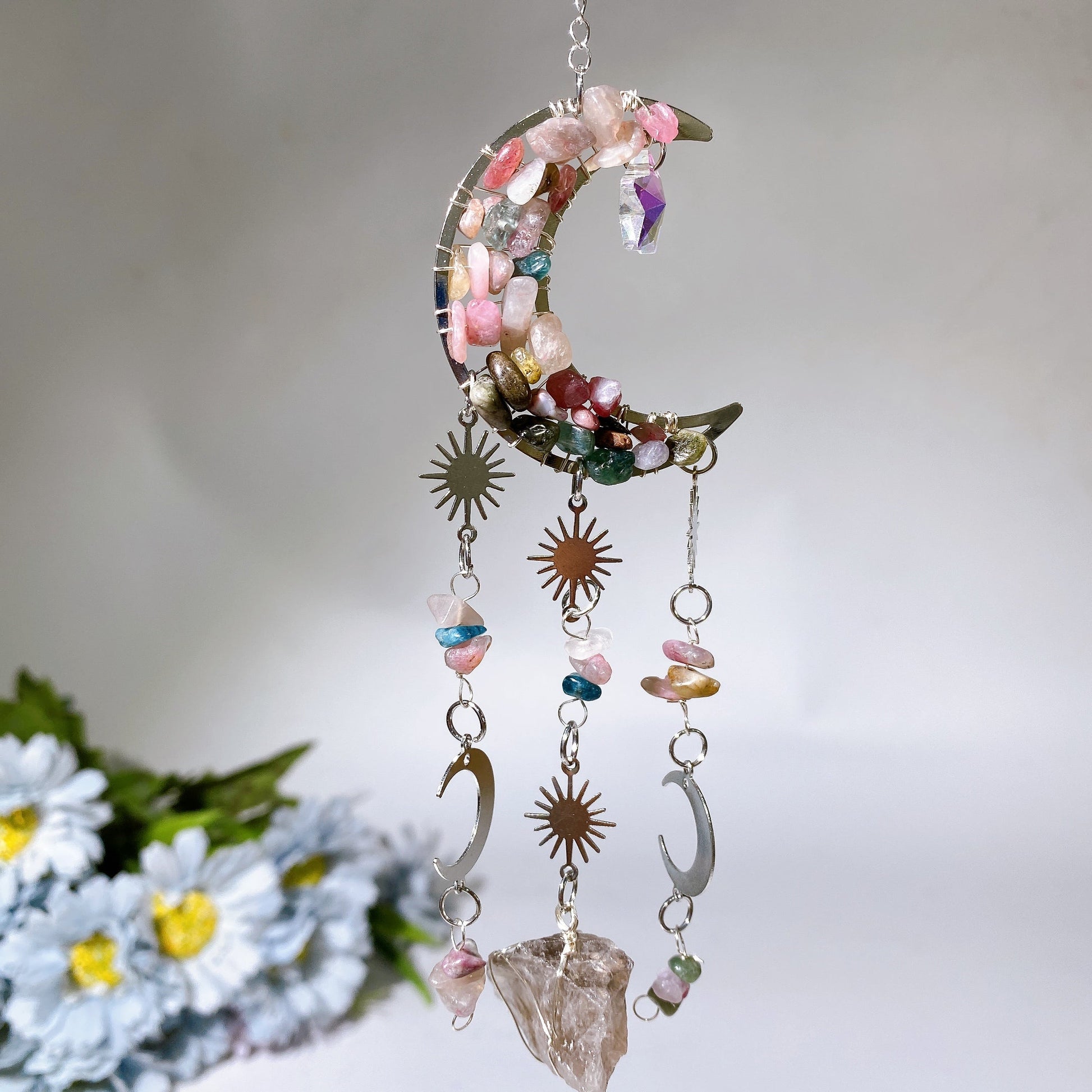 Crystal Chips Moon Shape Suncatcher Hanging Ornament Crystal Healing Bulk Wholesale